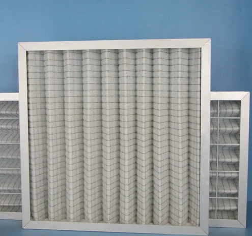 過濾材料是以折疊形式裝入切硬紙板內,迎風面積增大。流入的空氣中的塵埃粒子被過濾材料有效阻擋在褶與褶之間。潔凈空氣從另一面均勻流出。